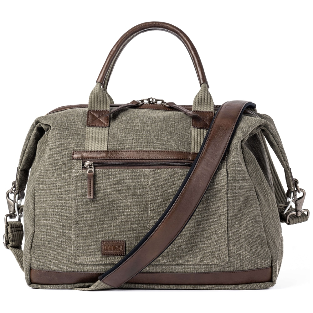 De 29L Retrospective Weekender Bag van Think Tank combineert een zachte constructie met volledige, met rits afsluitbare toegang tot het hoofdcompartiment. Gemaakt van steengewassen katoenen canvas en keperstof, versterkt met volnerf lederen details en draaghendels, biedt deze tas duurzaamheid met een vleugje luxe. De verstelbare, afneembare lederen schouderriem voegt een vleugje comfort toe met een gewatteerd middenstuk en aanpassingsmogelijkheden aan beide zijden.