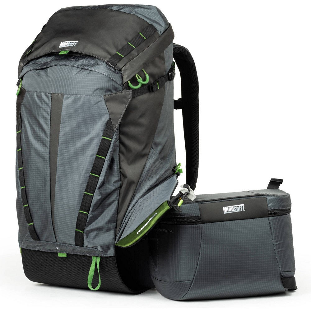 De Mindshift Rotation backpack is een innovatieve 34 liter rugzak. Deze rugzak is speciaal gemaakt voor avontuurlijke fotografen en biedt vrijwel onmiddellijke toegang tot je camera, zodat je kunt fotograferen en blijven bewegen zonder een stap te missen. Op het eerste gezicht zou je denken dat het gewoon een standaard doorsnee rugzak is. Het zijn eigenlijk twee tassen in één, want je kunt de heuptas van de rugzak scheiden en als stand-alone tas gebruiken wanneer je nog lichter op pad wilt gaan. Het onderste cameragedeelte draait onafhankelijk van de bovenkant voor directe toegang tot de cameratas met een inhoud van 8,5 liter die plaats biedt aan een standaard DSLR of mirrorless camera, zonder grip, plus drie tot vijf objectieven of een camera met een 70-200mm 2.8 objectief eraan bevestigd. Bovendien is er ruimte voor een 10 inch tablet of laptop. De cameratas is voorzien van een magnetische klep en een rits voor optimale veiligheid van je apparatuur.