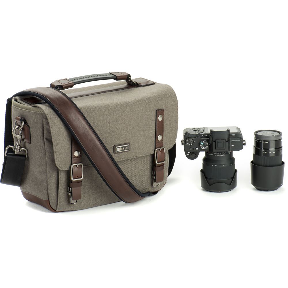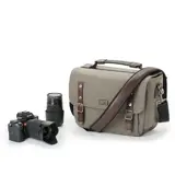 De Think Tank Signature 10 is een degelijke en handige schoudertas met compacte afmetingen en een behoorlijke capaciteit. De Signature 10 is een moderne, handgemaakte versie van de klassieke schoudertas, waarbij het klassieke gevoel van fijne wol gecombineerd is met degelijkheid en weerbestendigheid . Door de toepassing van lederen details, een onderkant van volnerfleder plus metalen sluitingen is deze tas zowel elegant als sterk. Dit is de versie in de Dusty Olive kleur.