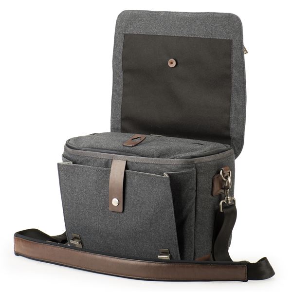De Think Tank Signature 10 is een degelijke en handige schoudertas met compacte afmetingen en een behoorlijke capaciteit. De Signature 10 is een moderne, handgemaakte versie van de klassieke schoudertas, waarbij het klassieke gevoel van fijne wol gecombineerd is met degelijkheid en weerbestendigheid. Door de toepassing van lederen details, een onderkant van volnerfleder plus metalen sluitingen is deze tas zowel elegant als sterk. Dit is de versie in de Slate Grey kleur.