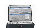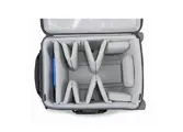 Of je nu reist met het vliegtuig of een ander soort transport, de Think Tank Video Rig 18 Trolley is de ideale manier voor het vervoeren van een complete video rig inclusief toebehoren. De koffer beschikt over een ruim hoofdvak met een ruime hoeveelheid gevoerde verdelers en bolsters voor het organiseren en beschermen van je apparatuur. Bovendien is er een aparte ruimte aanwezig voor een 17 inch laptop. Het grote scharnierende deksel met dubbele ritssluiting geeft je snelle toegang tot je apparatuur. Aan de binnenkant van het deksel zijn een paar handige gaasvakken met ritssluiting aangebracht. De lichtgrijze binnenbekleding maakt het vinden van uw spullen bij weinig licht eenvoudiger. Voor het opbergen van accessoires is de trolley aan de buitenkant voorzien van een grote zak met ritssluiting. Een zak op de achterzijde en verstelbare banden kunnen gebruikt worden om een statief of andere apparatuur aan te bevestigen.