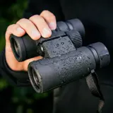 Dankzij stikstofvulling en O-ring afdichtingen is deze verrekijker waterbestendig tot een diepte van 1 meter gedurende 10 minuten en bestand tegen condensvorming bij snelle temperatuurwisselingen. De robuuste rubberen bekleding biedt extra bescherming en een stevige, comfortabele grip, zelfs bij natte omstandigheden.