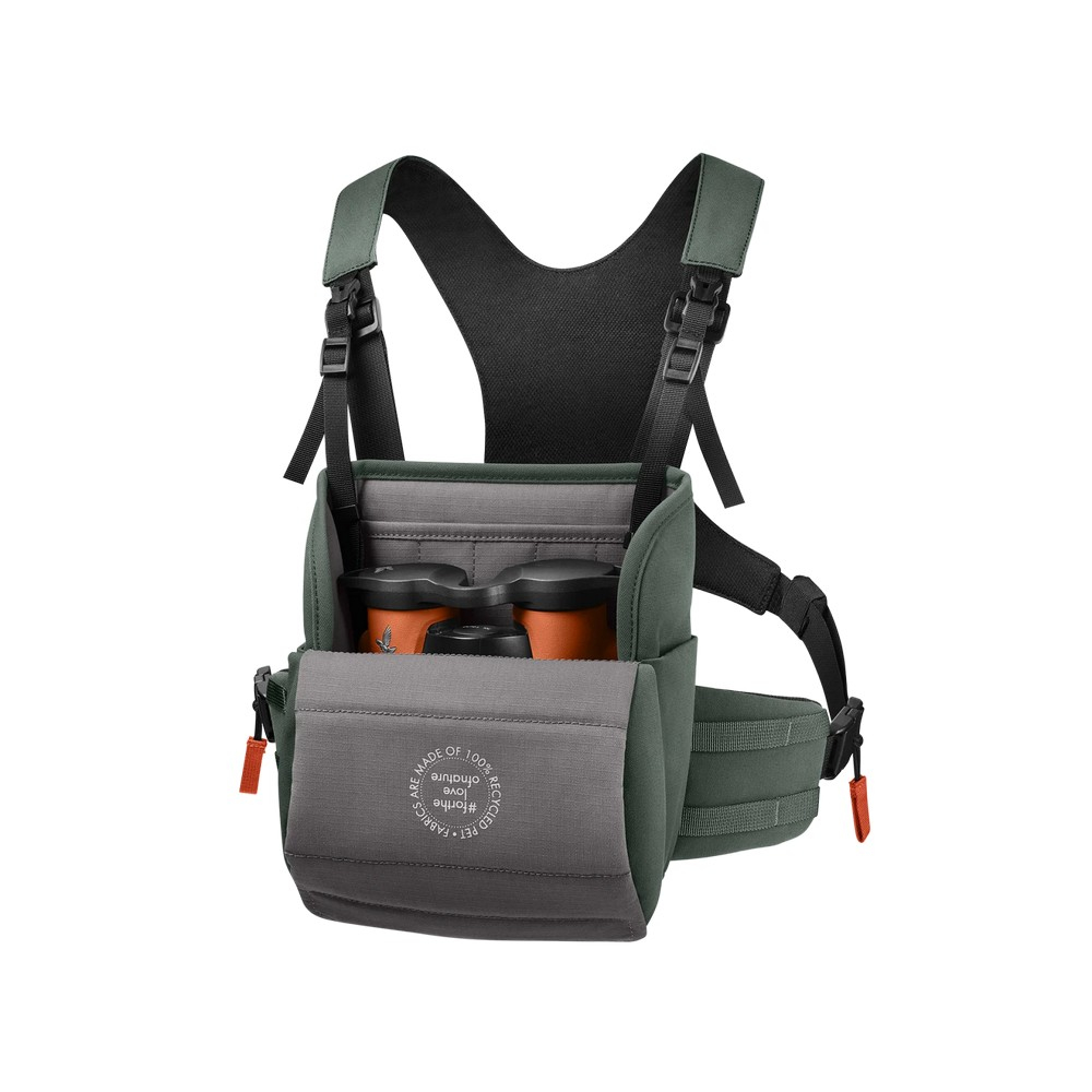 Het harnas is gemaakt van hoogwaardige materialen die bestand zijn tegen intensief gebruik en uiteenlopende weersomstandigheden. De verstelbare banden zorgen voor een persoonlijke pasvorm, terwijl de slimme bevestiging jouw verrekijker veilig op z'n plek houdt zonder hinderlijk te schommelen.