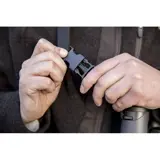 De ZEISS Comfort Harnas is gemaakt van kwalitatief hoogwaardige materialen en voelt daarom confortabel aan. De uitstekende afwerking voorkomt pijn in de nek en verdeelt het gewicht van de verrekijker over jouw bovenlichaam. De verrekijker blijft stevig zitten en zwaait niet alle kanten op als je loopt of beweegt. De riemlengte kan snel worden aangepast aan jouw voorkeuren. De verrekijker wordt aan de riem bevestigd door middel van een lus die door het oog aan de brug wordt gestoken. Deze bevestigingswijze is bijzonder geluidsarm en voorkomt schade aan de verrekijker. Door middel van klikgespen kun je de draagriem uiterst snel vast- en losmaken. Voor nog meer comfort: de uiteinden, die aan de verrekijker vastzitten, kunnen tot een lus worden verbonden, zodat je de verrekijker beter vast kunt houden, ook als je hem niet om jouw nek draagt.
