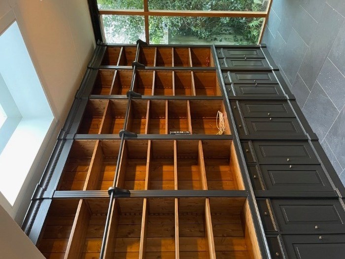 Houd rekening met de maten van deze meubelen i.v.m. transport naar binnen. Wij kunnen tegen meerprijs deze kast in 6 delen maken zodat deze delen via een trap naar boven passen