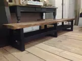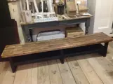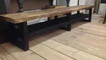 Tv meubel in de afmeting 2.10m x 0.40m x 0.40m. De tv meubel isgemaakt van dikke sloopbalken, het onderstel is soft black van painting the past en het blad is doorgeschuurd met notenlak. Heeft u liever een ijzeren