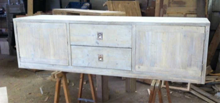 Tv meubel van steigerhout in een Grey-wash