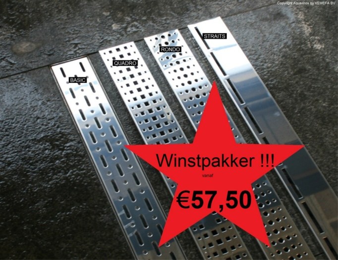 Prijzen voor de Douchegoot: (keuze uit rooster Basic, Quadro, Rondo of Straits)