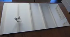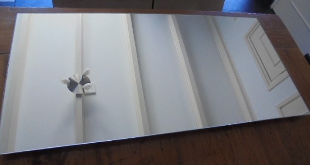 Formaat spiegel 70 x 34 cm rand geslepen, met mdf plaat erachter waarin de ophang mogelijkheden zijn gemaakt. Randen keurig afgewerkt.