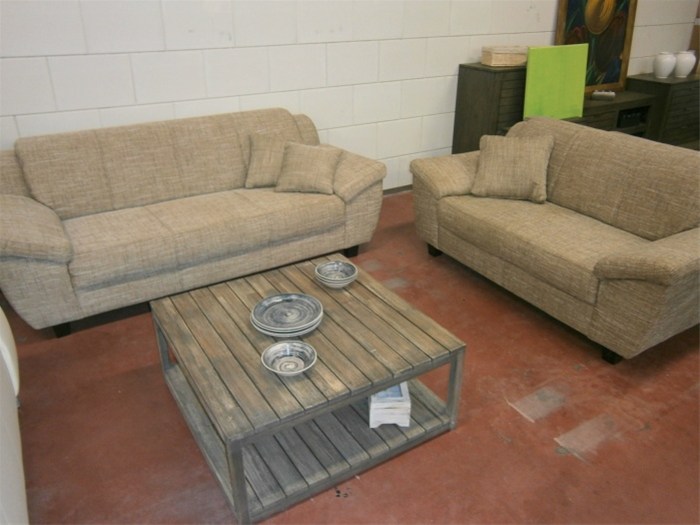 Bankstel in hoogwaardig dikke stof met kussens.