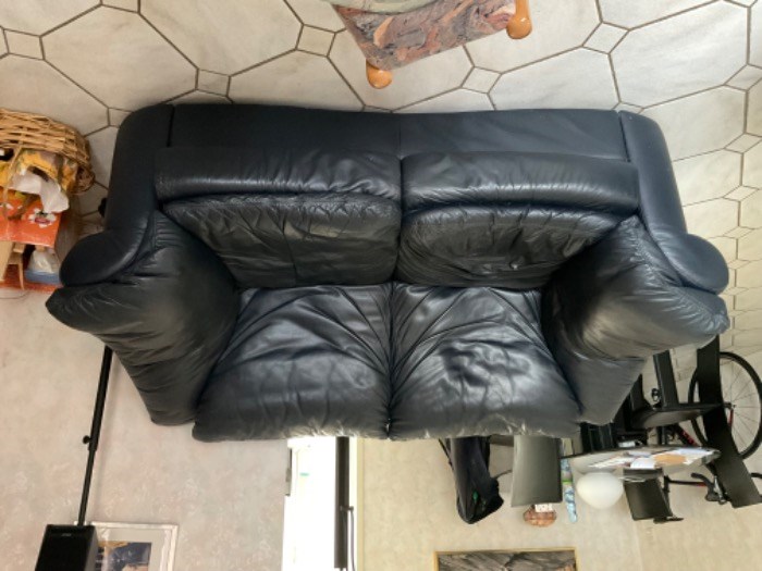 Zoals op de foto's te zien is heeft 1 bank duidelijke gebruikssporen, met betrekking tot de kleur; deze is ter hoogte van de benen wat kaal. Het betreft een leren bankstel wat snel de lichaamswarmte opneemt waardoor het leer niet koud aanvoelt.