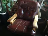 - bekleding leer, rug i.p.st. zitting aan vernieuwing toe
