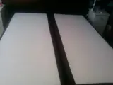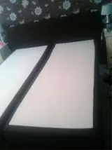 De boxspring is gebruikt, maar is nog goed van staat. De stof is nog goed van kleur, de matrassen zijn niet ingezakt. Kortom een goede, stevige, complete boxspringcombinatie.