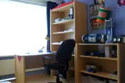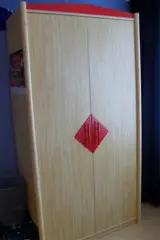 TeKoop aangeboden: Complete tienerkamer bestaande uit bed [ 90-200 m ], met ombouw, kledingkast [ hang- leg ], bureau met boekenkast, boekenkast laag, nachtkastje. Kleur grenen met rood. Diverse opzetmogelijkheden.