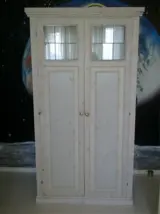 Een mooi juniorbed 90x2.00 whitewash met twee laden om lekker veel in op te bergen. Bijbehorende kast hxbxd 193x105x50 binnenin 3 planken kan ook worden veranderd naar hang en leg.