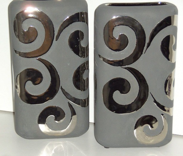 VAZEN GRIJS MET ZILVEREN KRULLEN 2 STUKS