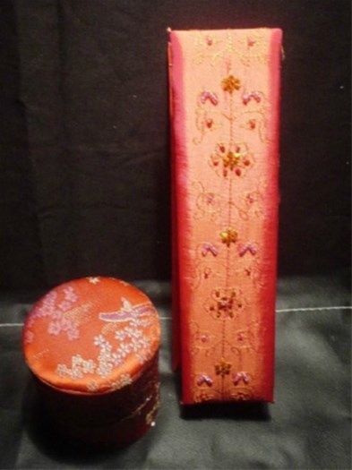 Materiaal:karton met (kunst)zijde bespannen.
