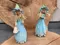 BEELD TWEE BLOEMEN MEISJES IN TURQUOISE SET VAN 2, 23 cm Polystone Nieuw