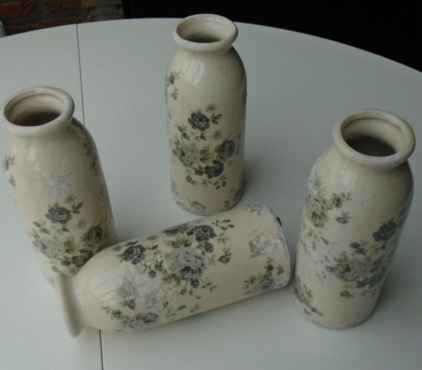 BLOEMEN VAZEN MET ROOSJES OLD LOOK 4 STUKS 20,5 hoog NIEUW
