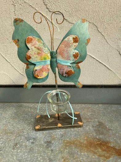 Leuke decoratieve standaard met vlinder en waxinelichthouder.