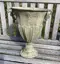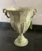Prachtige in oud groen uitgevoerde bloempot met rijkelijke decoratie zie foto.