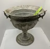 Prachtige zilverkleurig bloempot met rijkelijke decoratie zie foto.