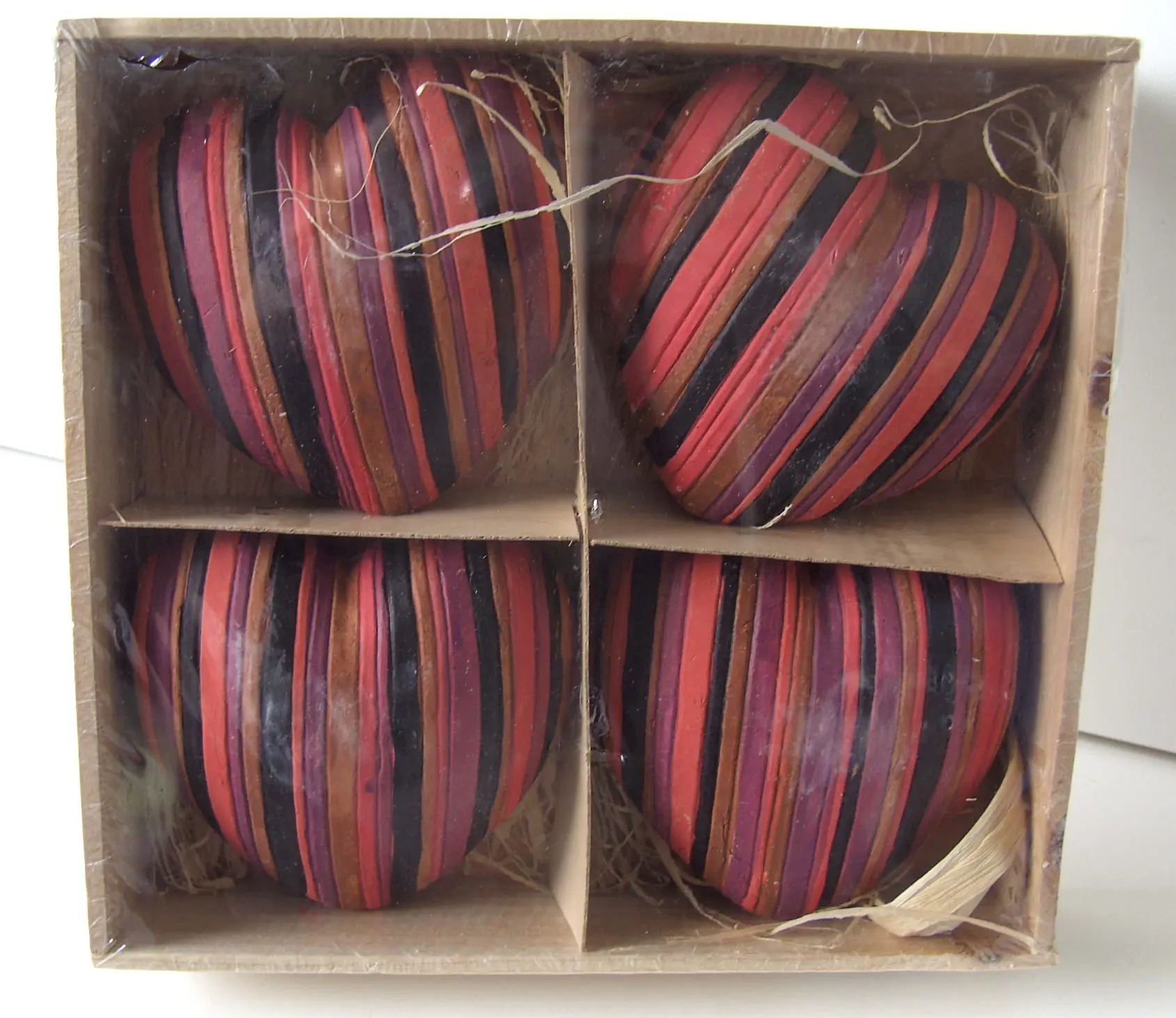 Deze aardewerk harten hebben strepen in de kleuren zwart/rood/bruin/ paars.