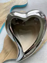 Aan de buitenkant is de prachtige hartvormige bloemenschaal geglazuurd in glanzend zilver.