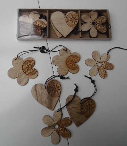 HOUTEN DECO HANGERS BLOEMEN EN HARTJES SET Nieuw