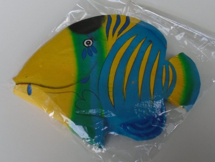 HOUTEN VIS 20 CM Nr 7 GEEL BLAUW NIEUW.