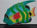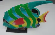 HOUTEN VIS GROOT 38 CM Nr. 2 GROENE TINTEN DIVERSE NIEUW.