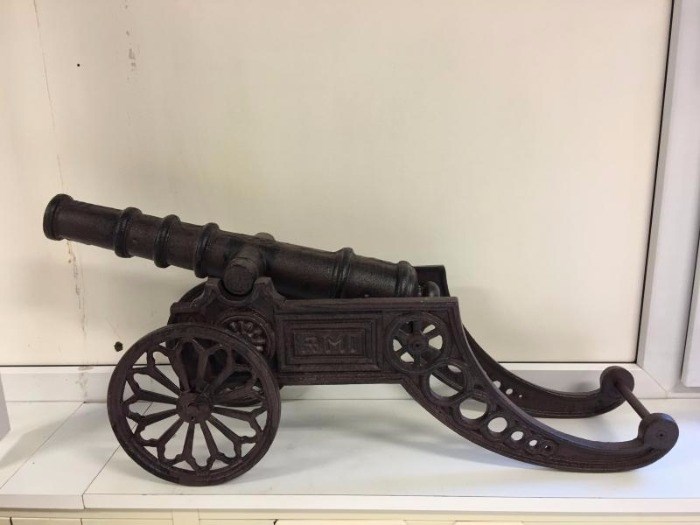 Gietijzeren kanon zoals in die tijd gebruikt werd, mooi decoratiestuk.