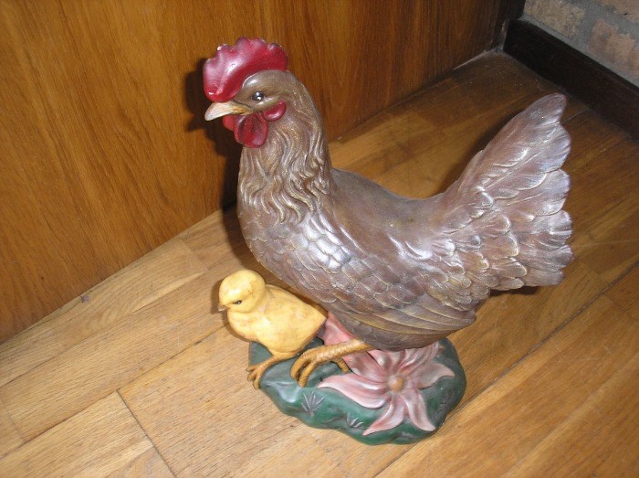 Kip met kuiken - gips? - 34 Cm ,helemaal gaaf - 17,50