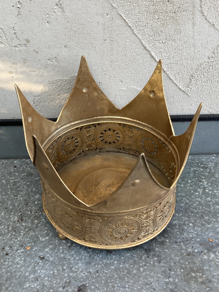 KROON ALS FLOWERPOT DECORATIE SCHAAL OP VOETJE GOLD 20,5 cm NIEUW