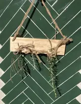 Leuk houten plankje met touwlussen om uw kruiden en bloemen aan op te hangen om te drogen.