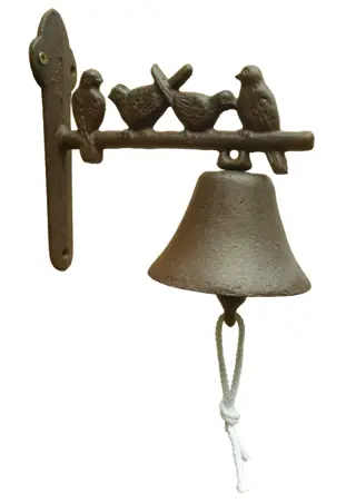 De deurbel is van ouderwets met de hand gegoten gietijzer.