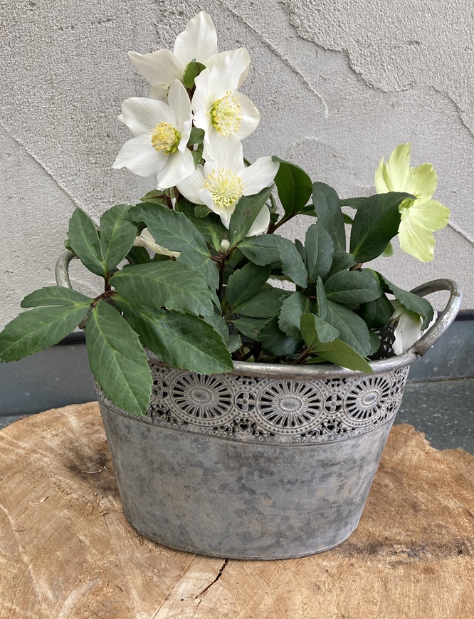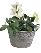 METALEN PLANTENBAKKEN FLOWER DESIGN OVAAL OLD LOOK MAAT M NIEUW
