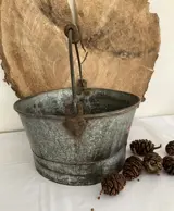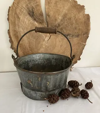 Voeg een vleugje nostalgie toe aan je interieur met deze oude emmer. Leuk voor opslag of decoratie, emmer is een echt vintage stuk met karakter en geschiedenis. Het unieke materiaal geeft een rustieke uitstraling die perfect past bij een landelijk, boerderij of industrieel interieur. U heeft een vleugje oude charme in huis met deze prachtige oude emmer.