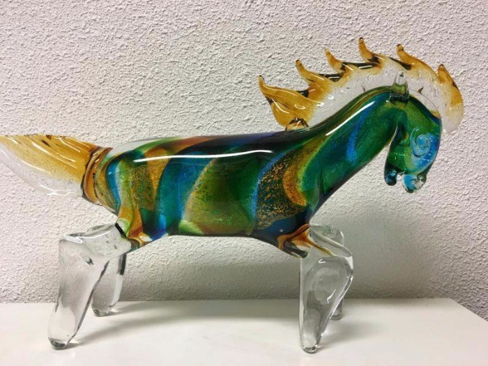 Mooi glasgeblazen kunstwerk, paard vol in kleur.
