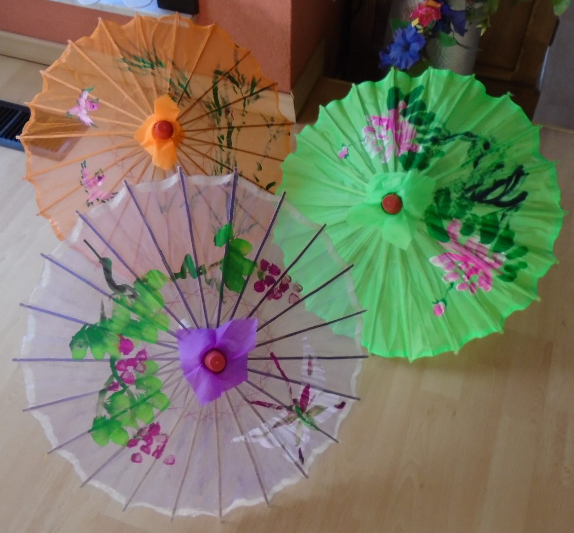PARASOL OOSTERS VOILE 3 stuks oranje, paars en groen