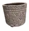 Zeer decoratieve pot met veel verschillende structuren, in oud look bruin.