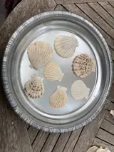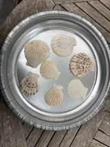 Decoratieve Sint Jacobsschelpen leuk om schalen de decoreren en naar keuze een kandelaar, waxinelicht of vaasje bij te plaatsen.