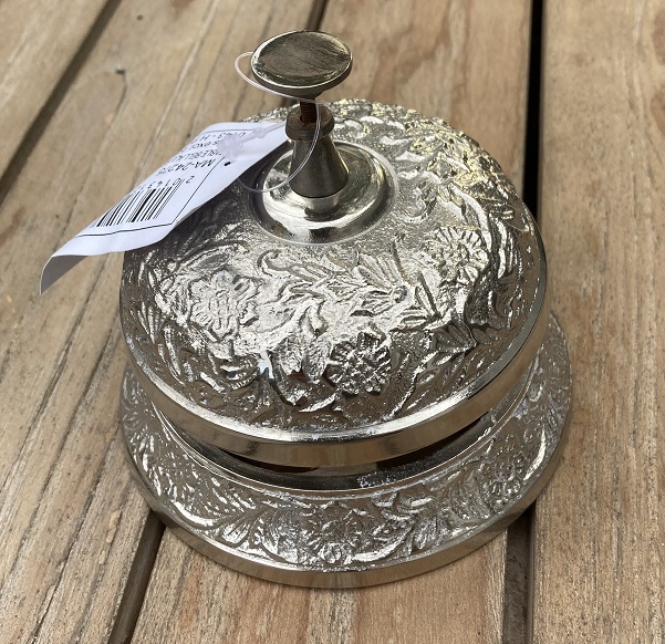 TAFELBEL HOTELBEL RECEPTIEBEL WINKELBEL BEWERKT LUXE ZILVER NIEUW