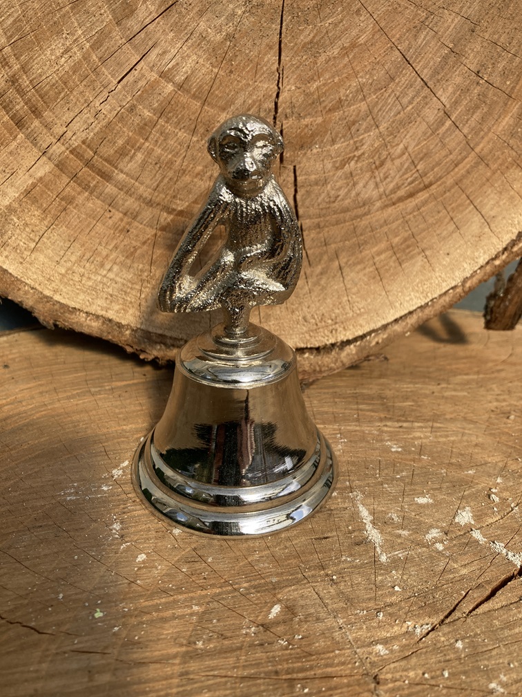 TAFELBEL ZILVER MET AAPJE NIEUW