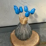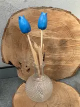 TULP AARDEWERK OP HOUTEN STEEL BLAUW NIEUW