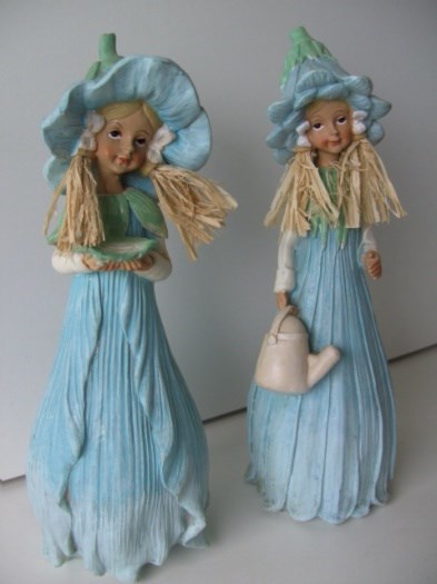 Dit prachtige beeldjes 1 meisje draagt een gieter en het andere een blad.