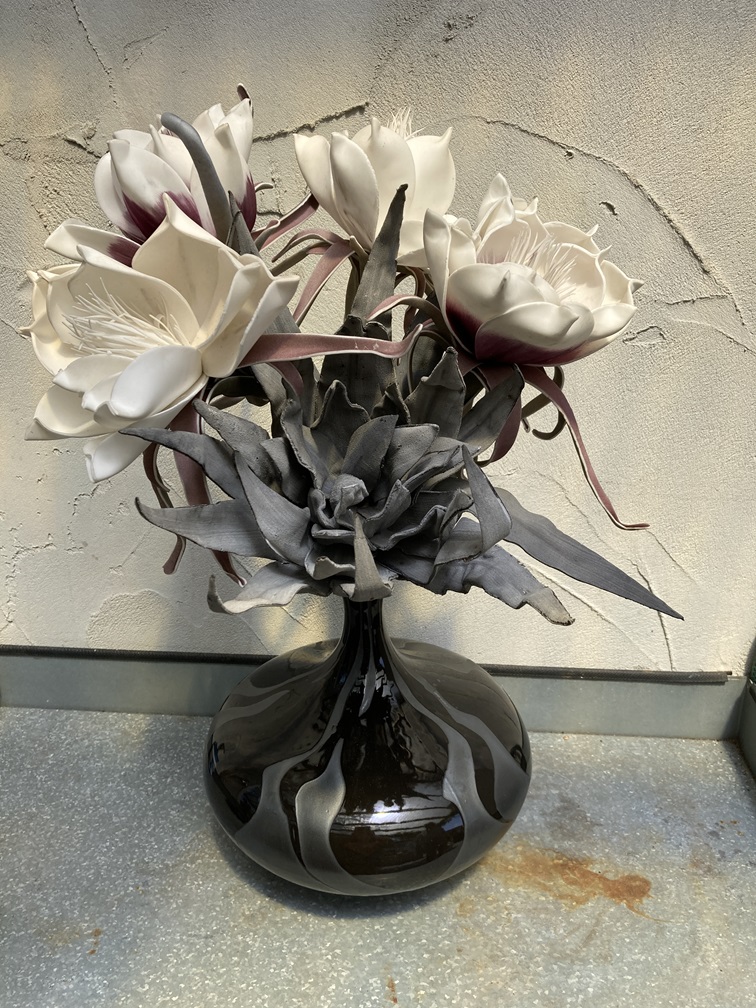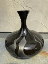 Grote decoratieve vaas in zwart met decor vlammen.