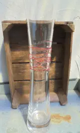 Prachtig vaas van onder naar het midden toelopend, en van het midden naar boven weer uitlopend. In het midden van de vaas is decoratieve rode draad verwerkt.