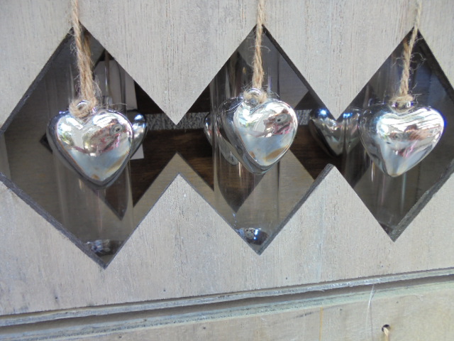Materiaal: glas/ hout/ touw en harde kunststof harten