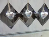 Doorkijk gemaakt in ruiten waarin aan elke zijde 3 harten hangen (totaal 6).